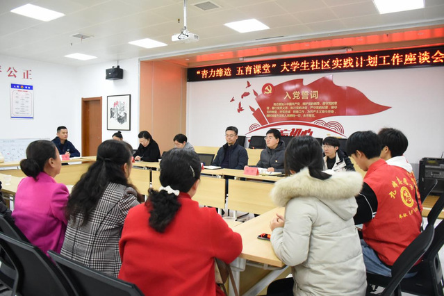 本网讯(通讯员邓哲皓 摄影 邓哲皓)为推进物机学院“青力缔造 五育课堂”大学生社区实践计划,加强社区科普教育工作。11月14日下午,物理与机电工程学院(以下简称“物机学院”)党委书记吴田、院长李莎、党委副书记陈杨、学工办主任冯媛媛、分团委书记任欣、青年志愿者协会指导老师郭家欣、志愿者代表赴武汉仁尚里社区开展工作座谈会,仁尚里社区书记王聪、社区工作人员和居民代表参会。王聪主持会议。