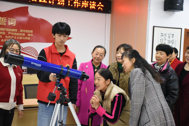 会后,志愿者向社区居民代表们展示智能机器人,天文望远镜等物机学院特色科创成果。(新闻中心编辑 刘琪)