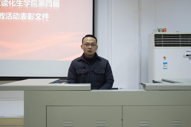 本网讯(通讯员 袁满 张灏)化学与生命科学学院通过开展丰富多彩、形式多样的科普宣教活动不断探索推动学风建设与人才培养相融相促,旨在弘扬科学精神,普及科学知识,守正拓实,久久为功,营造我院良好学风氛围。为更好地总结工作,表彰优秀,12月21日,我院于报告厅4召开第四届科普宣教活动暨学风建设月总结表彰大会。参加此次大会的有我院党委副书记雷晓林,副院长张宇,学院全体辅导员以及2023年学风建设月活动优秀工作者及先进集体学生代表。