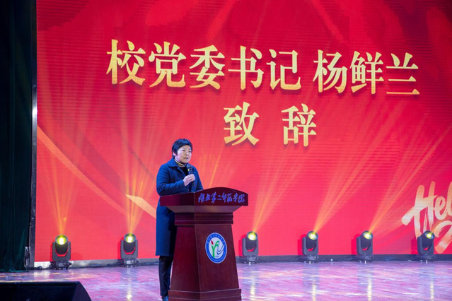 杨鲜兰致辞,对外院师生们为学校发展所做的贡献表示感谢,并致以新年的祝福。她勉励同学们一要扎根中国大地,弘扬爱国主义精神,秉承知行合一,弘扬人类共同价值;二要学成“语通中外”的真本领,养成“融合发展”的大智慧;三是做胸怀“国之大者”,做推进构建人类命运共同体的文化互鉴使者。