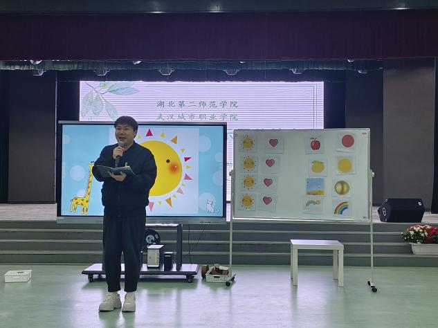 活动中,武城职实习生先后展示了《小兔和大熊》、《太阳喜欢》、《木瓜恰恰恰》等三节音乐集体教学活动,并进行课后总结与反思。我校学前教育专业实习生代表陈健欣展示了大班集体教学活动《摸“萝”塑像》。结束后,陈健欣从师幼互动、课程设置以及教学方法进行了自我点评。