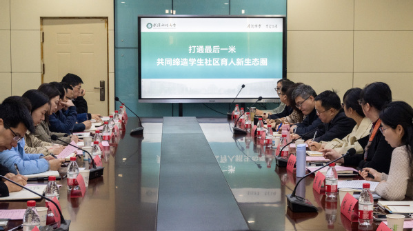 在交流座谈会上,武汉科技大学学生工作处副处长龚晗,心理健康教育中心副主任薛春燕,学生事务科、队伍建设科相关负责老师分别介绍了武科大“一站式”学生社区建设情况、心理健康教育中心工作开展情况,并就新时代大学生劳动教育、辅导员队伍建设等情况进行充分交流。