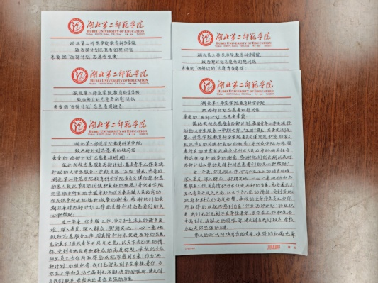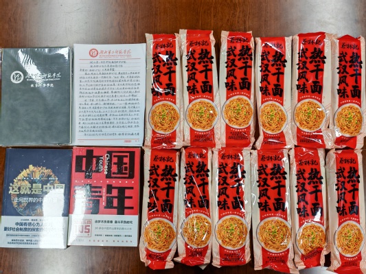 本网讯(通讯员 郑国媛)4月29日,教育科学学院给李霞、冯珊珊、黄卓煜、张澳、明婉青五位西部计划在岗志愿者送去了“娘家人的关心和祝福”:一封手写慰问信、一本学院定制笔记本、一本《中国青年》、一本《这就是中国——走向世界的中国力量》以及一箱热干面。教科院分党委书记乐三明、副书记魏豪等领导老师一直心系西部计划在岗志愿者的工作生活情况,经过细心挑选、包装、邮寄,用浓浓的牵挂与深深的期许为志愿者们带去关心和祝福,希望他们能够始终秉承志愿服务精神,不忘初心,牢记使命,在服务西部、基层的广阔实践中弘扬湖北第二师范学院“学高、身正、诚毅、笃行”的精神,倾情奉献,建功立业。