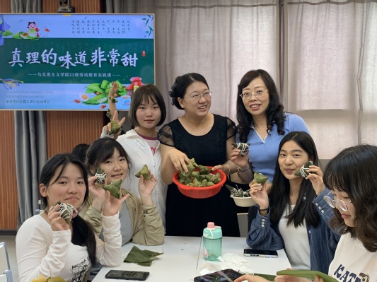 本次活动以“真理的味道非常甜”为主题,师生们一同捋粽叶,填糯米,放蜜枣,裹粽叶,扎线绳,旨在坚持“五育并举”,引导同学们在劳动教育实践中传承传统文化,感受华夏千年的端午文化魅力,在动手实践中感悟劳动意义,在平凡劳动中感受不凡。