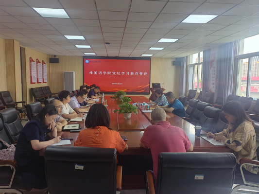 本网讯(通讯员 钱晓琳 汤玮)6月25日下午,校党委书记杨鲜兰、党政办公室副主任李小兵深入外国语学院开展党纪学习调研督查,外国语学院班子成员、党支部书记、三办主任、系部主任参加座谈会。
