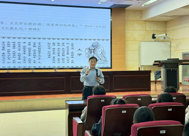 田恒平以《大学及适应》为题,围绕“如何做‘大学生’、怎样做‘大学问’、如何成为‘大学者’”三个方面展开。田恒平鼓励同学们,要做有理想、有勇气、有追求梦想的“大学生”,勇于担当时代赋予的使命;要做自强不息、坚定为党为国为民理念的“大学问”,通过不断学习与实践,为社会发展贡献智慧与力量。他希望同学们积极进取,成为有胸怀格局、目标追求的“大学者”,在外语学习领域深耕细作,努力用外语传播中国文化,讲好中国故事。