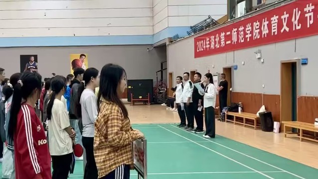 体育学院副院长尹开宁致开幕辞。他表示,乒乓球赛不仅为乒乓球爱好者提供了交流切磋的平台,也将进一步推动乒乓球运动在学校的普及与发展,为体育教育注入新的活力,并预祝本次比赛取得圆满成功。