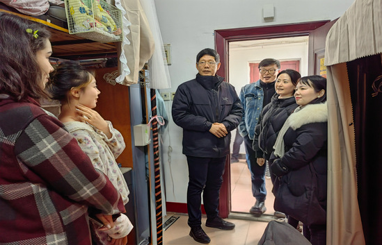 刘昕一行重点走访了少数民族学生宿舍,详细了解学生学习生活情况,勉励大家积极融入校园生活。在艺术学院学生宿舍,刘昕特别慰问了参加央视春晚演出的学子,对其精彩表现给予充分肯定。走访期间,检查组对宿舍卫生、水电设施等进行全面检查,对发现的问题现场督办整改。