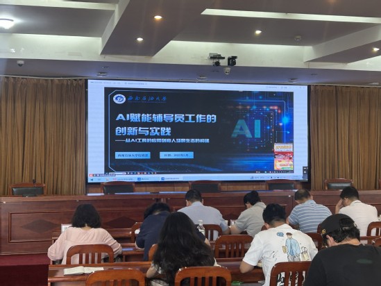 课上,吴书强围绕辅导员科研素养培养,从意义、路径、选题方法、论文撰写等方面进行系统讲解,强调立足工作实践转化科研成果,为辅导员科研能力提升提供了实操指导。伍晓芸以“人工智能技术与思想政治教育融合”为主题,通过案例展示技术在思想动态分析、个性化教育等领域的应用前景,建议辅导员借助AI技术创新教育方法,提升思政工作实效性。在互动环节中,辅导员代表就工作中的实际问题与专家深入交流。