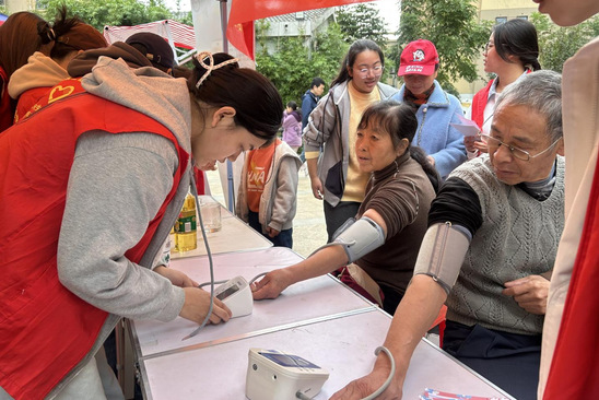 活动采用专业实践与社区服务相结合的形式,设置了“健康血压监测站”“化学清洁小课堂”“护眼知识科普角”三大服务板块。新生志愿者们充分发挥专业特长,为居民提供血压测量和健康指导服务,演示生活中的化学清洁妙招;通过眼球模型讲解科学用眼知识,将课堂所学转化为便民服务,让科学知识走进社区居民生活。