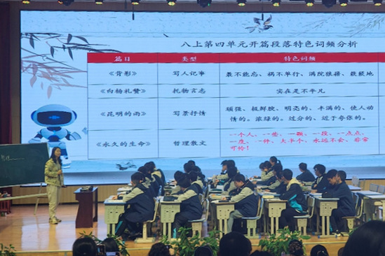 在八年级语文课堂上,同学们观摩了《黄河颂》教学过程。授课教师结合“黄河与民族精神”的拓展内容,将语言学习与价值引领有机融合——从黄河地理象征延伸至民族精神纽带,从诗句中“英雄气魄”联系到当代青年责任担当,充分展现语文课堂作为思政育人载体的功能。同学们认真记录教师的教学逻辑,关注其在落实语言训练目标的同时,如何自然融入思政内容,切身感受“工具性与人文性统一”的教学实践形态。
