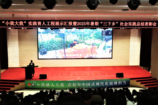 本网讯(通讯员 池家飞 学通社见习记者 陈思怡)10月30日下午,学校“小我大我”实践育人工程展示汇报暨2025年暑期“三下乡”社会实践总结表彰会在图书馆二号报告厅举行。副校长张红梅、吕辉出席,活动由校团委书记刘锐主持。