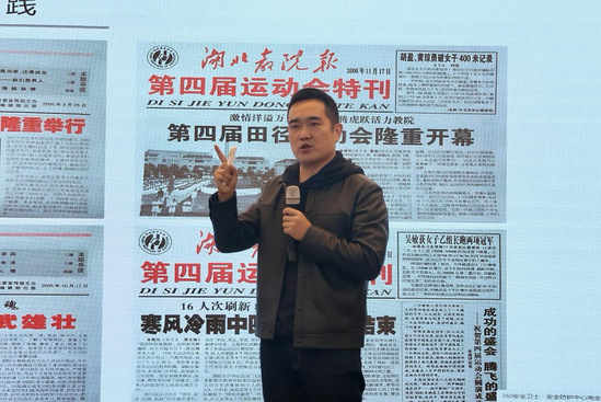 讲座中,邢文旭分享了自己从湖北第二师范学院求学、商贸领域就业,到投身盛隆电气创业,深耕光谷、建设光谷的成长历程。他回忆,在母校师就读期间,校报编辑的实践经历让他积累了扎实的专业能力,为后续职业发展奠定坚实基础。一篇篇见报文章记录着他的成长足迹,而他也亲历了学校从更名扩建到周边区域蓬勃崛起的时代变迁。谈及就业与创业心得,邢文旭表示,无论职业赛道如何切换,新闻专业所培育的专业理念与思维方法,始终是支撑他在光谷不断前行的重要力量。