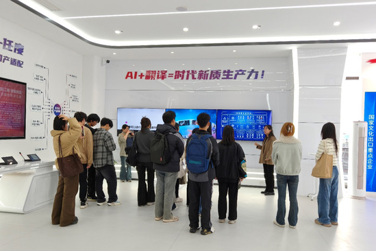 师生一行移步至公司科技成果展示厅参观,厅内陈列的一系列创新成果,从智能翻译平台到多语信息处理解决方案,生动展现了传神公司将语言技术与市场需求深度融合的强大研发实力,也让同学们清晰看到外语在游戏、短剧、网络小说等领域的广阔应用前景。