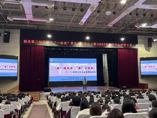 本网讯(通讯员 张文怡 徐潇萌)11月11日晚,我校“一站式”学生社区第十七期学生心理骨干培训(第三场)在大礼堂举行。本次培训以《“宿”造关系,“舍”计未来》为主题,由中南财经政法大学余金聪主讲,全体新生寝室长参加学习。