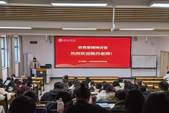 本网讯(通讯员 赵霞榕 李伟)11月18日,化学与生命科学学院在博雅楼421教室举办“新生看光谷”大思政课之教育家精神讲堂系列活动。活动邀请武汉市优秀教师、“光谷好老师”韩丹作专题报告,2025级生物科学专业学生及生物系教师代表参加学习。