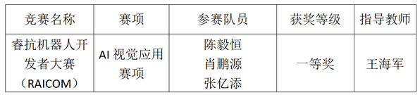 本网讯(通讯员 曹晓明)近日,2025年睿抗机器人开发者大赛(RAICOM)全国总决赛AI视觉应用赛项在深圳技术大学落幕。我校计算机与人工智能学院学子表现优异,获大赛一等奖。