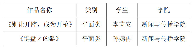 本网讯(新闻中心记者 夏锐)12月2日,2025年湖北“新时代网络文明公益广告”征集活动百部入围展播名单揭晓,我校两件学生作品从全国1410部参赛作品中突围,成功入选。