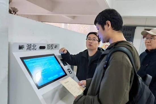 活动现场,湖北省委宣传部宣传事业发展中心向我校捐赠一台自主设计开发并委托制造的多功能自助打证机。这台专利设备可实现全省著作权登记证等常用证件的网上申报、就近打印,让用户便捷享受著作权证书全程申办与打印服务,有效提升了版权服务的便捷性与覆盖面。该设备为社会公益设备,授权期内可全流程免费使用。