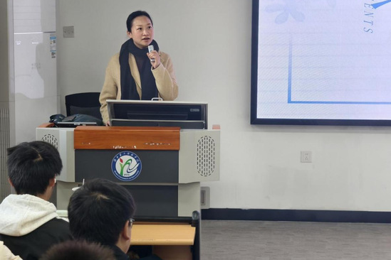 本网讯(通讯员 赵霞榕 周文豪)12月10日下午,化学与生命科学学院以“让思维落地,让素养开花”为主题,举办教育家精神讲堂暨教育见习活动。武汉市化学学科带头人黄郁郁受邀主讲,2025级化学师范专业学子全员参与,共探化学教学创新路径。