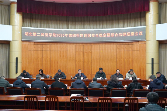 本网讯(通讯员 肖沫晔)12月23日上午,学校在行政楼一号会议室召开2025年第四季度校园安全稳定暨综合治理联席(扩大)会议。校党委副书记胡兴、刘昕出席会议,党委常委、宣传部部长周忠主持会议。